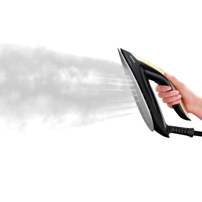 Праска з парогенератором PHILIPS PerfectCare 8000 PSG8140/80. Адаптує кількість пара в залежності від швидкості прасування. Оснащена спеціальною функцією, яка вимикає залишену без нагляду праску.