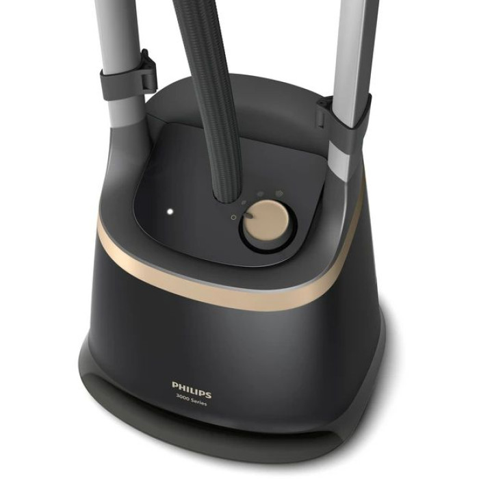Відпарювач Philips 3000 Series STE3170/80. Витрачайте менше часу на прасування одягу з відпарювачем Philips Stand Steamer серії 3000 завдяки вбудованій дошці та відпарювачу з великим гострим наконечником. Захистіть свій одяг від бактерій* і додайте йому ароматної свіжості за допомогою відділення для ароматів MyEssence. Відкидна дошка StyleBoard забезпечує надійну підтримку під час відпарювання. Просто затисніть тканину між паровою пластиною і дошкою для легшого відпарювання та отримання відмінних результатів зверху вниз.