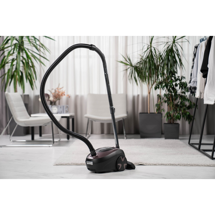Мішковий пилосос ARDESTO оснащено високопродуктивним двигуном 800 Вт і призначено для сухого очищення твердих підлог і килимових покриттів. Мішок для пилу об’ємом 2,5 л забезпечує достатню місткість для регулярного використання, а подвійна система фільтрації з вхідним і вихідним фільтрами ефективно утримує дрібний пил і сміття. Пристрій також устатковано індикатором заповнення пилозбірника, що робить експлуатацію ще зручнішою. Для комфорту користування передбачено регулювання потужності, автоматичне змотування кабелю завдовжки 5 м, руків’я для перенесення і можливість вертикального паркування. У комплекті є гнучкий шланг (1,5 м), хромована телескопічна труба (78 см), універсальна щітка 2 в 1 для підлоги й килимів, щілинна насадка та мішок для пилу.