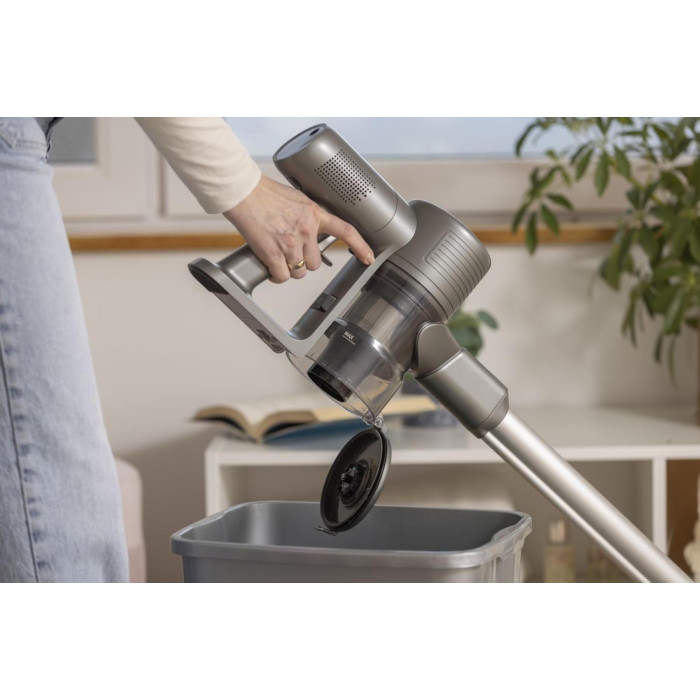 Бездротовий пилосос Gorenje SVC252420FFA поєднує компактність і функціональність формату 2 в 1. Потужність всмоктування 95 Вт та турбощітка допомагають ефективно прибирати різні поверхні. Автономна робота до 60 хвилин дозволяє завершити прибирання без поспіху. LED-підсвітка щітки спрощує очищення темних зон. Контейнерний пилозбірник легко очищується після використання.