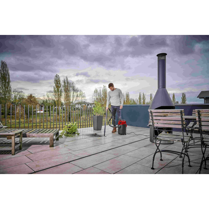 Пилосос для вологого/сухого прибирання Einhell TC-VC 1820 потужністю 1250 Вт підходить для прибирання різних поверхонь і салонів авто. Має міцний 20-літровий бак, шланг 1,5 м Ø36 мм, функцію видування та тримачі для кабелю й аксесуарів. Оснащений зручною кришкою для швидкого спорожнення контейнера.