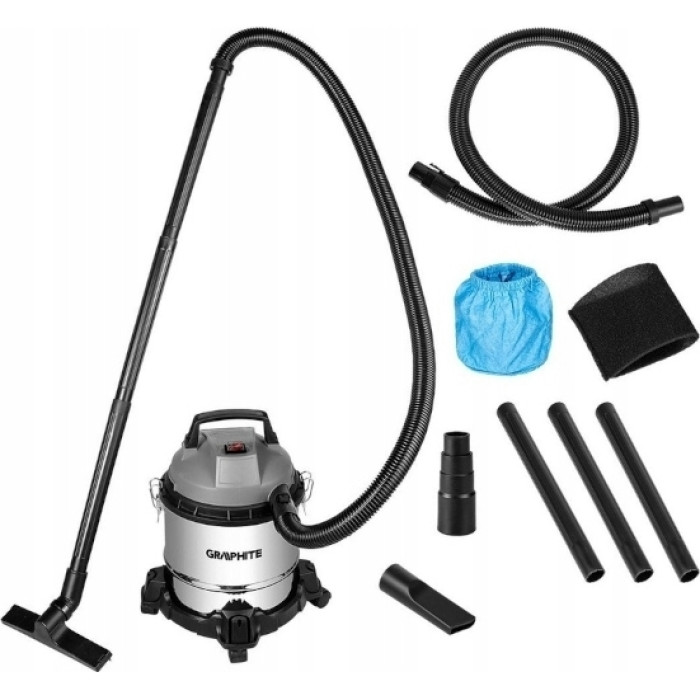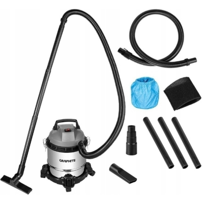 Пилосос професійний GRAPHITE, 800Вт, 12кПа, контейнер 12л, розетка 220В/800В, колеса