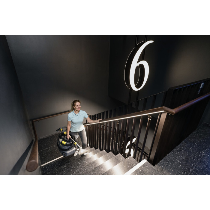 Профессиональный моющий пылесос Karcher Puzzi 8/1 Adv эффективно очищает ковры, мебельную обивку и другие текстильные поверхности благодаря глубокому распылению моющего раствора и быстрому сбору влаги. Прозрачная крышка, насадки и смотровое окно в рукоятке обеспечивают контроль процесса. Легкий вес, эргономичная ручка и большие кнопки делают аппарат удобным в использовании. Компактная и прочная конструкция гарантирует длительный срок службы, что особенно ценно для клининговых компаний, отелей, ресторанов и сервисов по химчистке автомобилей.