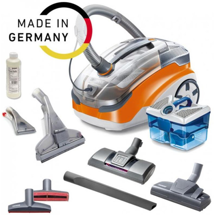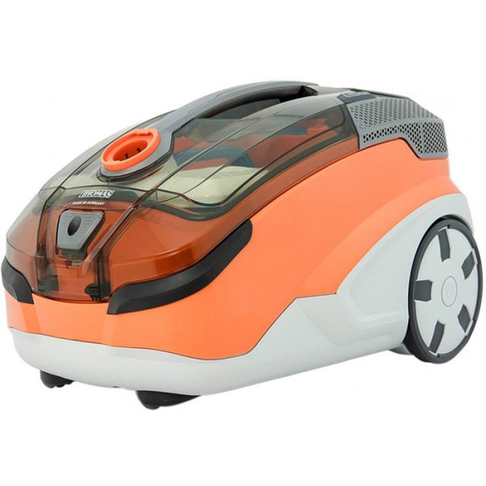 Сухая уборка без мешка для пыли - нет лишних затрат и нет падения мощности всасывания. Вместо мешка используется инновационная технология - система очистки воздуха AQUA-BOX. Системой AQUA-BOX очень просто пользоваться: перед уборкой в контейнер наливается литр воды, а когда уборка закончена, вода со всем собранным мусором выливается. Благодаря особой конструкции АКВА-БОКСА мощность всасывания во время уборки постоянно высокая, поэтому гарантированно отличный результат. Свежий и чистый воздух после уборки - Thomas Wet-Jet технология подавления пыли. Уникальная технология подавления пыли THOMAS WET-JET на входе в Aqua-Box создает мощную "водяную стену" на пути запыленного воздуха. Четыре расходящихся "душа" интенсивно промывают воздух от мусора, крупных и мелких частиц пыли, а также аллергенов. Все, что было собрано, после уборки вместе с грязной водой просто выливается. Воздух в доме становится полезным для дыхания - свежим и чистым. Всего одно движение - и ваши полы и ковры отлично вымыты. Швабра больше не нужна! Превосходный результат, которым будет гордится даже самый требовательный любитель чистоты, получается благодаря особой насадке. Она одновременно разбрызгивает чистую воду, отмывает поверхность и высушивает ее. Такой чистоты еще не было! Обновление ворса мягкой мебели. Насадка для влажной уборки обивки мягкой мебели очищает ворс от пыли и помогает ликвидировать пятна. Особенно актуальна для аллергиков и для семей с маленькими детьми. Эта насадка также хорошо отмывает пятна с ковров. Легкая и эффективная уборка шерсти с ковров и полов. Переключаемая насадка с подставкой из специального материала значительно облегчает уборку полов и ковров в домах, где живут пушистые питомцы. Суперлегкая очистка ковров от шерсти. Даже такой сложный для уборки мусор, как шерсть, пух или длинные человеческие волосы, теперь легко собирается турбощеткой Thomas. Валик турбощетки вращается с огромной скоростью, и его щетинки, расположенные по спирали, подцепляют и удаляют мусор из ворса ковра. У турбощетки снимается крышка, и это значительно упрощает очистку валика. Любимый диван без шерсти домашних животных. Насадка с вставками увеличенной ширины из особого материала с нитеподъемным эффектом. Она легко отделяет шерсть и пух от ворса обивки диванов и кресел. Качественно и глубоко очищает подстилки домашних питомцев. Удобная настройка мощности всасывания - технология Touch Tronic. Эффективная уборка при минимальных энергозатратах: можно точно подобрать мощность всасывания под конкретный тип покрытия. 4 режима уборки с индикацией-подсказкой помогают быстро настроить мощность всасывания. Простой уход за фильтрами. Все поролоновые фильтры и фильтр тонкой очистки (Н) ЕРА можно мыть. Это увеличивает их срок службы и обеспечивает высокое качество уборки.