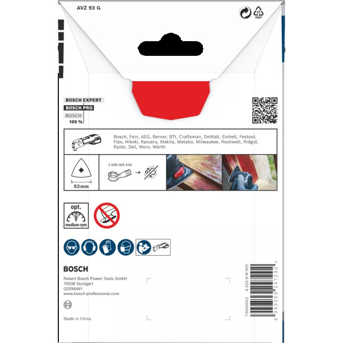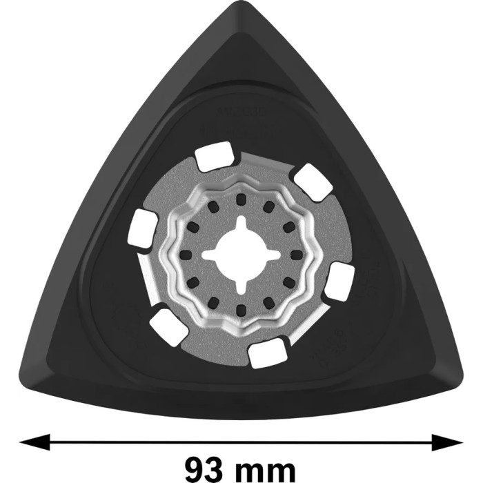 PRO AVZ 93 G – високоефективна шліфувальна платформа: її форма дає змогу обробляти поверхні, краї та кути без вібрації. Завдяки особливій конструкції під час шліфування кута вона лежить рівно, а не натискає на одну точку. Це покращує результати і подовжує термін служби. Пластина підходить для широкого спектра шліфувальних аркушів для дельташліфувальних машин. Платформу PRO AVZ 93 G можна використовувати для шліфування деревини й видалення фарби з поверхонь, прикріпивши до неї потрібний шліфувальний аркуш.