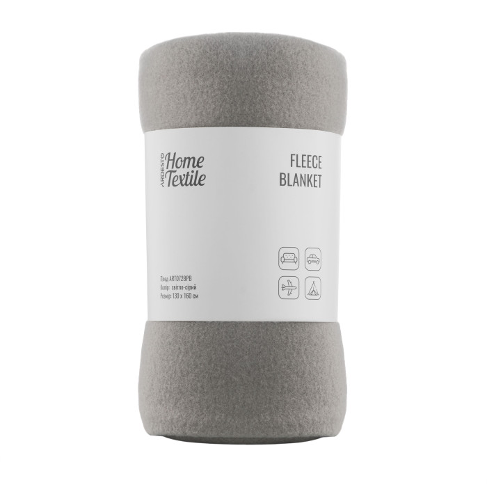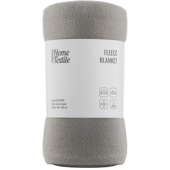 Плед ARDESTO Fleece 130x160см, 100% поліестер, сірий світлий