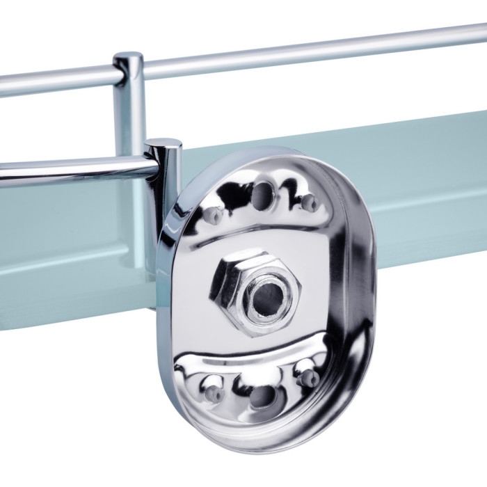 Полиця Kroner KRM Elbe - ACG2907-1 вироблена з прозорого скла з округлими краями, кріплення виготовлені з міцного металу з хромованим покриттям. Довжина полиці — 520 мм. Поличку можна розмістити під дзеркалом і зберігати на ній ванні засоби гігієни, а бортик захистить їх від випадкових падінь. Не розміщувати полицю в місцях прямого контакту з водою.