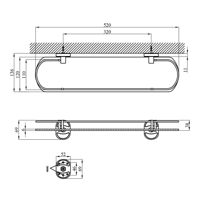 Полиця Kroner KRM Elbe - ACG2907-1 вироблена з прозорого скла з округлими краями, кріплення виготовлені з міцного металу з хромованим покриттям. Довжина полиці — 520 мм. Поличку можна розмістити під дзеркалом і зберігати... Читать далее...