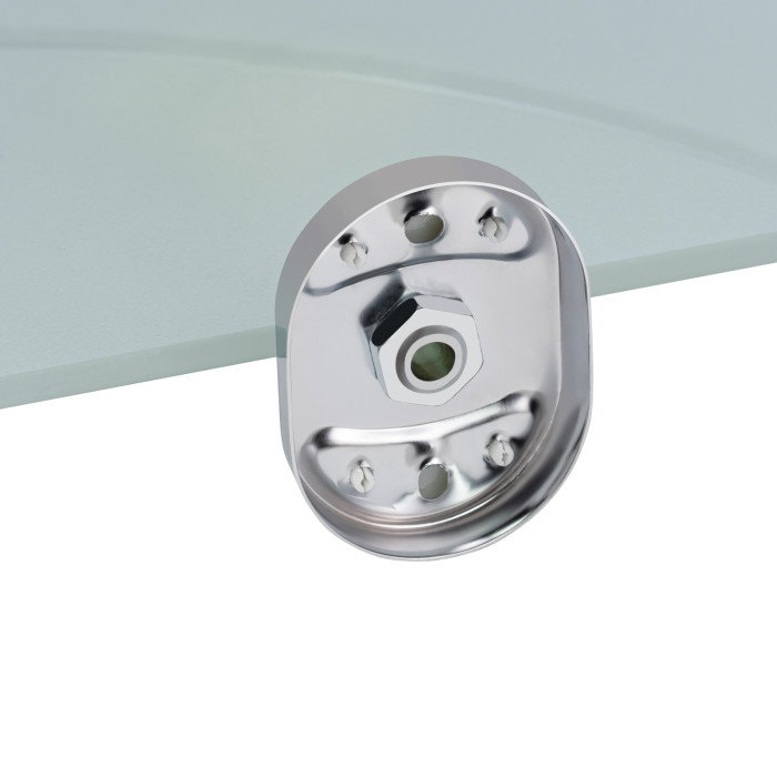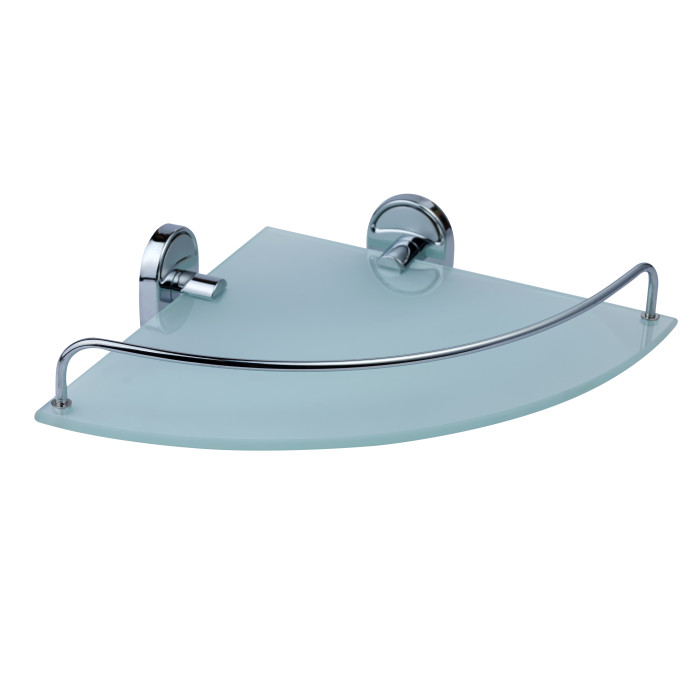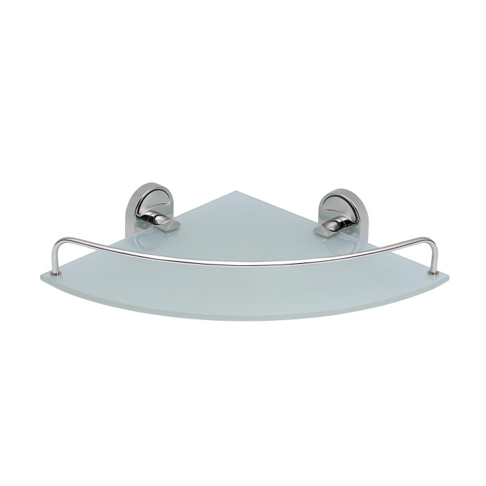Кутова полиця Kroner KRM Elbe - ACG2921-1 вироблена з прозорого матового скла з пластинами кріплення й бортиком із високоякісного металу з хромованим глянсовим покриттям. Вона зробить дизайн будь-якої ванної кімнати привабливішим. Не розміщувати полицю в місцях прямого контакту з водою.