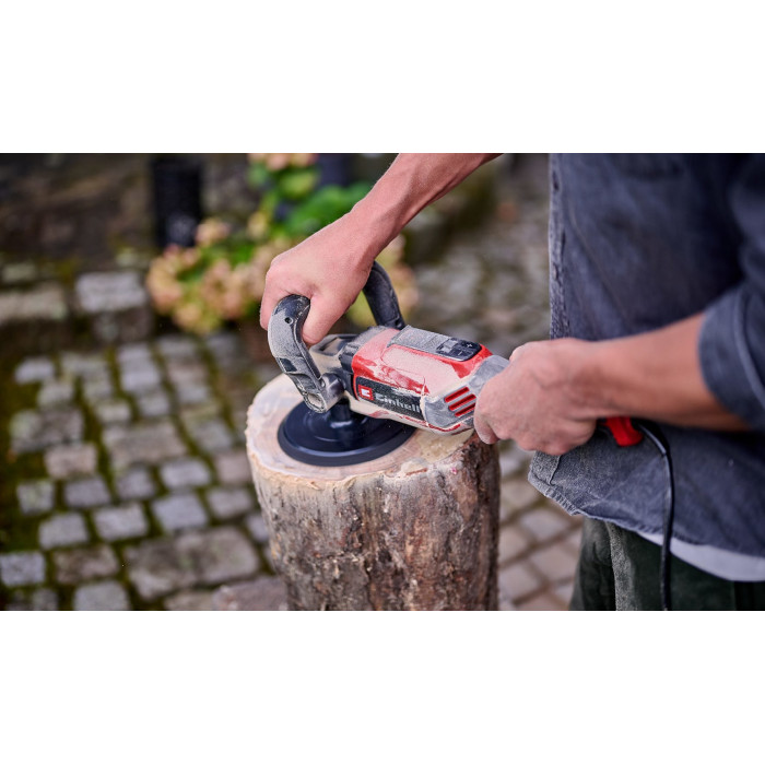 Полірувальна/шліфувальна машина Einhell CC-PO 1100/150 CE потужністю 1100 Вт підходить для полірування пофарбованих поверхонь і шліфування дерева, металу чи пластику. Має регулювання обертів і підтримку сталої швидкості під навантаженням. Заміна насадок здійснюється швидко завдяки блокуванню шпинделя, диск із мікро-липучкою забезпечує надійну фіксацію. Ергономічна ручка з м’якими накладками та додаткова ручка покращують контроль.