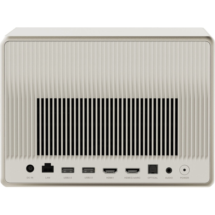 XGIMI HORIZON Ultra можна купити тільки в нейтральному бежевому кольорі. Акуратне виконання з використанням штучної шкіри, тканини та алюмінію прикрасить будь-який інтер’єр.