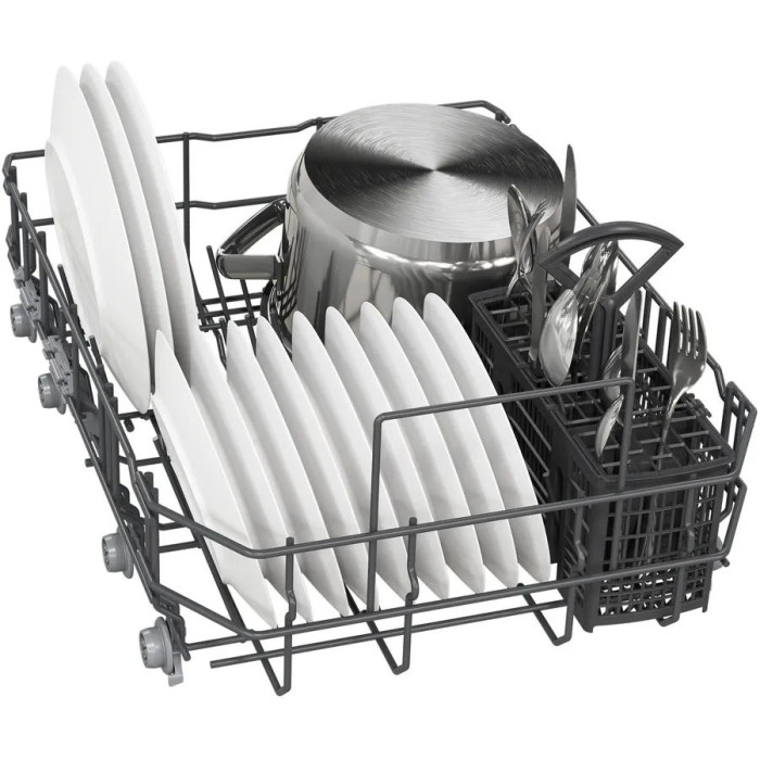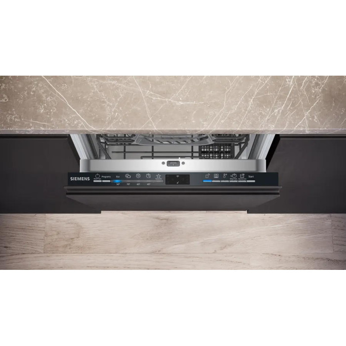 Вбудована посудомийна машина Siemens шириною 45 см розрахована на завантаження до 10 комплектів посуду. Модель оснащена дисплеєм і набором автоматичних програм для різних режимів миття. Клас енергоефективності A+ орієнтований на раціональне споживання ресурсів. Внутрішня камера з нержавіючої сталі зберігає гігієнічність і довговічність. Формат вбудовування зберігає цілісність кухонного інтер’єру.