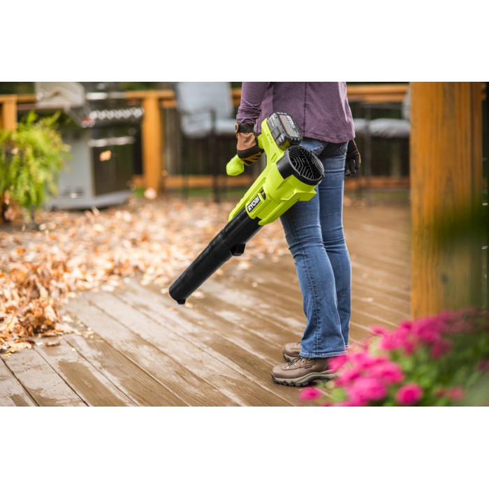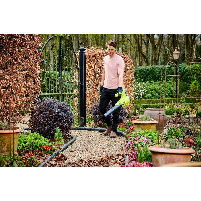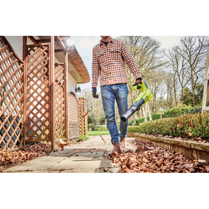 Акумуляторний повітродув Ryobi RY18BLA-0 ONE+ 18В (код товару: 5133005411) відмінний інструмент для видалення сміття з різних поверхонь, як біля будинку, на доріжці, в альтанці, так і в саду, на ділянці. Легка конструкція та досить комфортна в роботі для ефективного видалення липкого вологого листя з твердих поверхонь, особливо у поєднанні зі скребком.