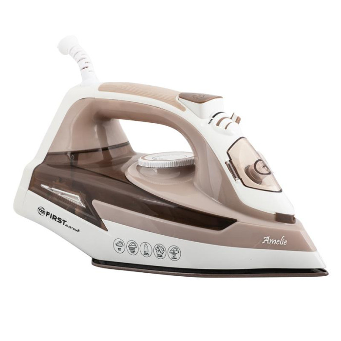 Праска First FA-5628-8 - це функціональний пристрій для прасування одягу. Вона зроблена з урахуванням зручності використання, тому оснащена масою ергономічних деталей. Рукоять виконана таким чином, щоб ви могли активно маневрувати праскою на площині. В цілому дизайн пристрою досить лаконічний і нейтральний: класичний форм-фактор, базова колірогама, символи і позначення функцій безпосередньо на корпусі. Заливний отвір резервуара для води має щільну кришку і досить великий діаметр.