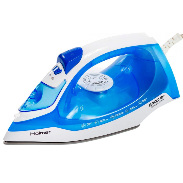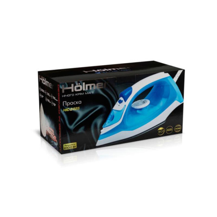 Праска Holmer HIC-2425 для сухого прасування і з парою, має потужність 2400 Вт (час нагрівання max ~ 30 сек), паровий удар 120 г/хв, постійну подачу пара 30 г/хв. Керамічна підошва забезпечує легке ковзання по тканинах різних типів, розгладжуючи навіть найскладніші ділянки.