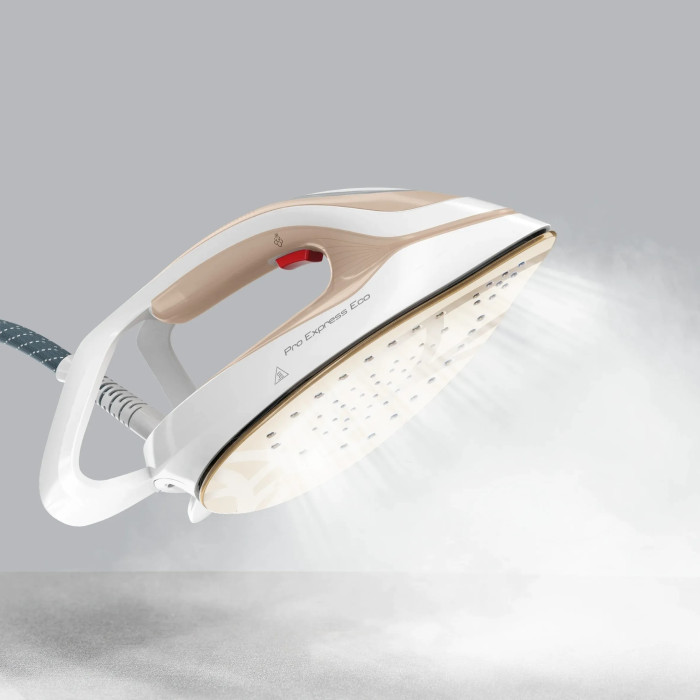 Парова праска Tefal Pro Express Eco пропонує ідеальне поєднання енергоефективності та дбайливого догляду за тканиною завдяки режиму Eco, що економить до 45% енергії.