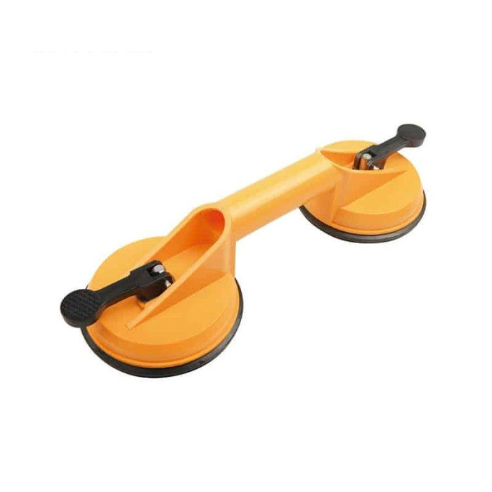 Присоска потрійна представляє собою вакуумне пристосування, призначене для полегшення встановлення, демонтажу і переносу скла, дзеркал та інших виробів або матеріалів вагою до 50 кг. Підходить для використання як в профільних майстернях, так і в домашньому вжитку. Конструкція складається з двох круглих присосок діаметром 115 мм кожна і рукоятки із затискачами для зручного та швидкого захоплення/випуску скла. Корпус виготовлений з міцного, стійкого до деформацій пластику.
