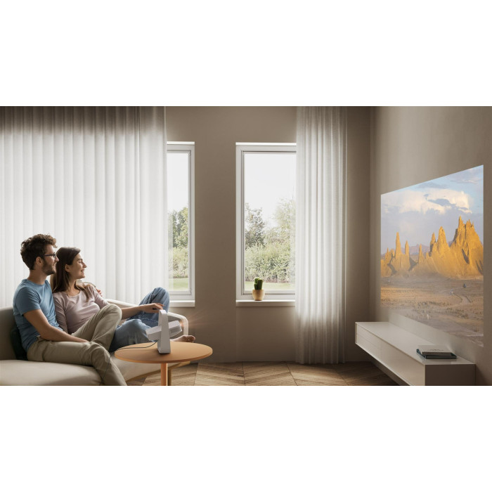 Вбудована підставка з можливістю регулювання на 150° - ваш наступний проектор може бути елегантним, як фоторамка, компактним і водночас потужним. Дивіться з будь-якого місця під будь-яким кутом з неймовірною легкістю і без зусиль регулюйте кут для ідеального перегляду.