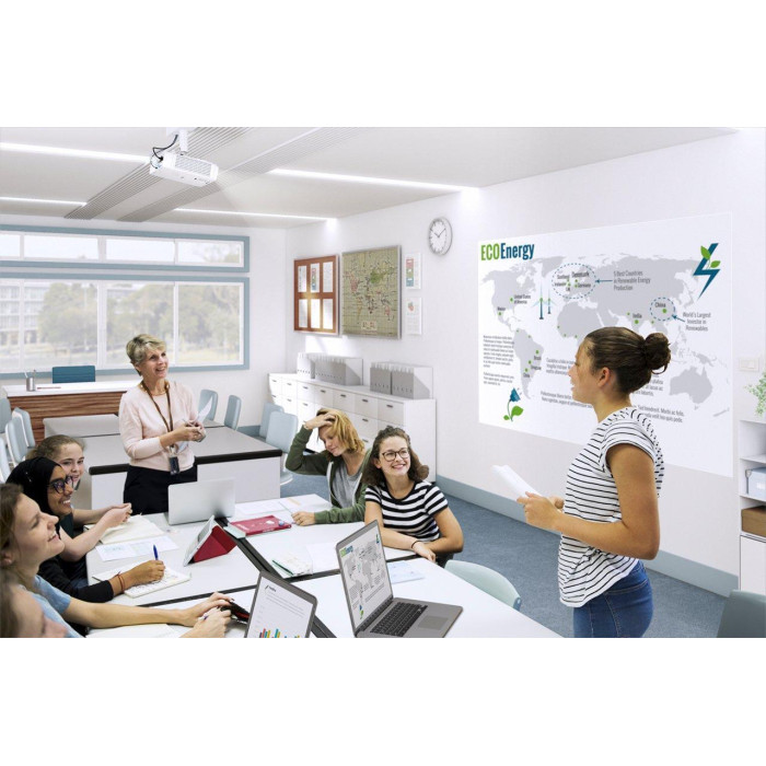 EB-L265F дає змогу масштабувати розміри дисплеїв до 310 дюймів за допомогою одного проектора, а в разі поєднання двох пристроїв - ще більше. Full HD, яскравість 4 600 люмен і технологія 3LCD забезпечують яскраві кольори та високу якість зображення - ідеальне рішення для створення цікавих та інформативних дисплеїв навіть у світлих приміщеннях.