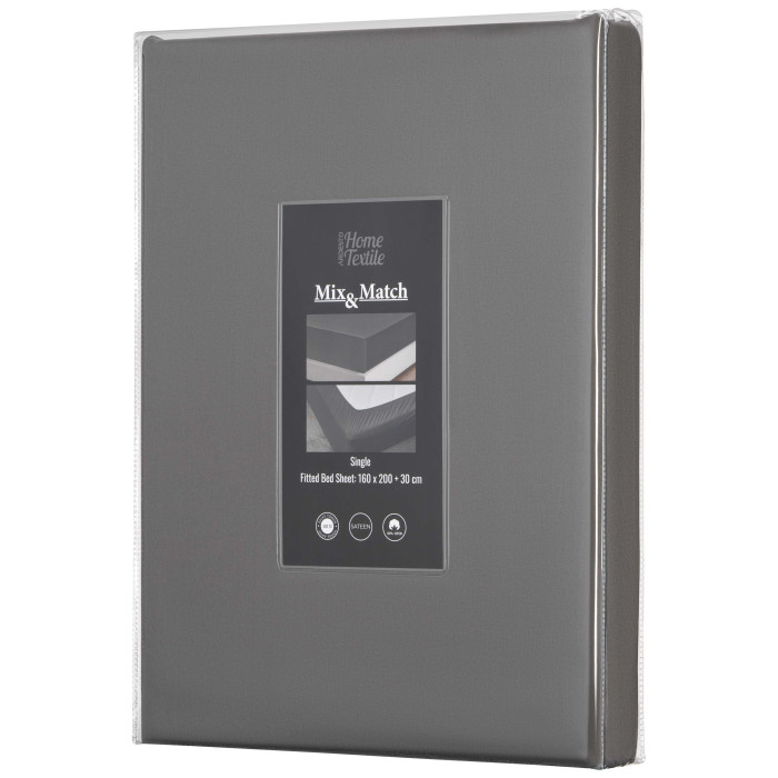 Простирадло на резинці ARDESTO Mix&Match Premium, 160х200+30см, 100% бавовна, сатин, сірий