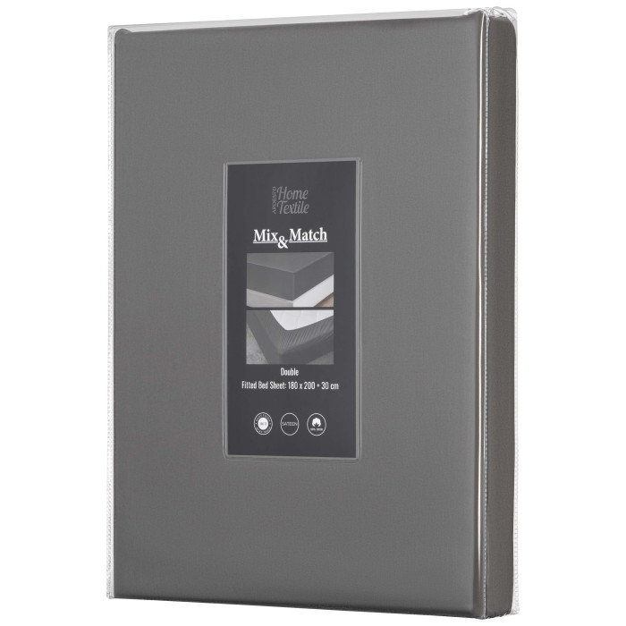 Простирадло на резинці ARDESTO Mix&Match Premium, 180x200+30см, 100% бавовна, сатин, сірий