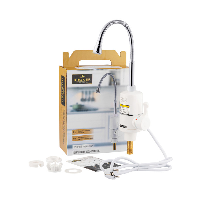 Проточний водонагрівач Kroner KRM Volt - CW190RFA замінює звичайний змішувач та водонагрівач, забезпечуючи постійне нагрівання води в одній точці. Використання Kroner KRM Volt - CW190RFA заощаджує корисний простір на кухні та кошти на купівлю додаткового обладнання. Гнучкий вилив обертається на 360 ° і тим самим дозволяє налаштовувати напрямок потоку води. Нагрів води здійснюється за рахунок ТЕНу з нержавіючої сталі потужністю 3000 Вт, який миттєво нагріває воду, що проходить через нього. Установка и подключение водонагревателей не требует специальных навыков и оборудования - монтаж можно провести самостоятельно, все необходимое для подключения уже есть в комплекте.
