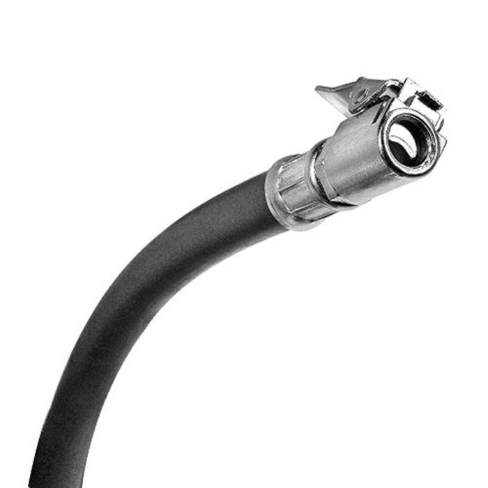 Для якісної роботи є кнопка спуску занадто високого тиску. Манометр точно показує тиск в шині, а для запобігання ушкоджень корпус манометра одягнений в гумову накладку. Довжина шланга для під"єднання до шини 37 см.