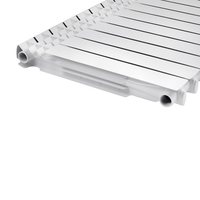 Радіатор алюмінієвий Calor CO-500A2 створений з урахуванням передових технологій у сфері виробництва опалювального обладнання. Особливу увагу приділено високій міцності та корозійній стійкості радіатора, що є найважливішою умовою його експлуатації в системах центрального опалення України та країн СНД. Секція радіатора складається зі сталевого закладного елемента, залитого під тиском алюмінієвим сплавом. Конструкція секції повністю виключає контакт теплоносія з алюмінієвим сплавом. Для складання секцій в єдиний прилад використовуються високоміцні сталеві ніпелі, виконані методом холодного кування, і силіконові прокладки, які забезпечують надійну герметичність з різними типами теплоносія за високих температур і тиску. Поверхня радіатора пофарбована методом анафорезу з подальшим напиленням порошкової емалі в електростатичному полі білого кольору і відповідає німецькому колірному стандарту RAL 9010. Радіатори мають збільшену тепловіддачу та якісне фарбування кожної секції.
