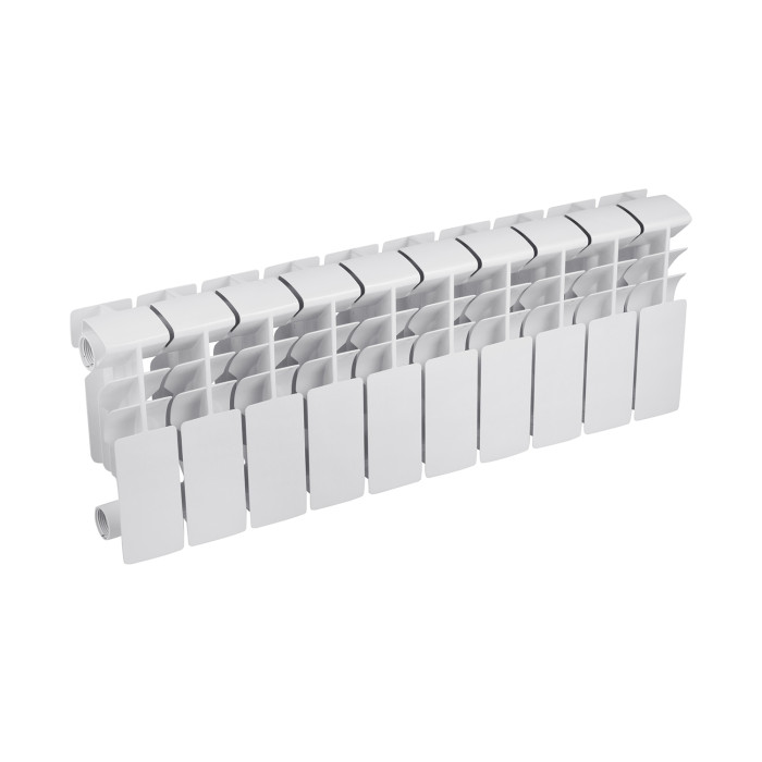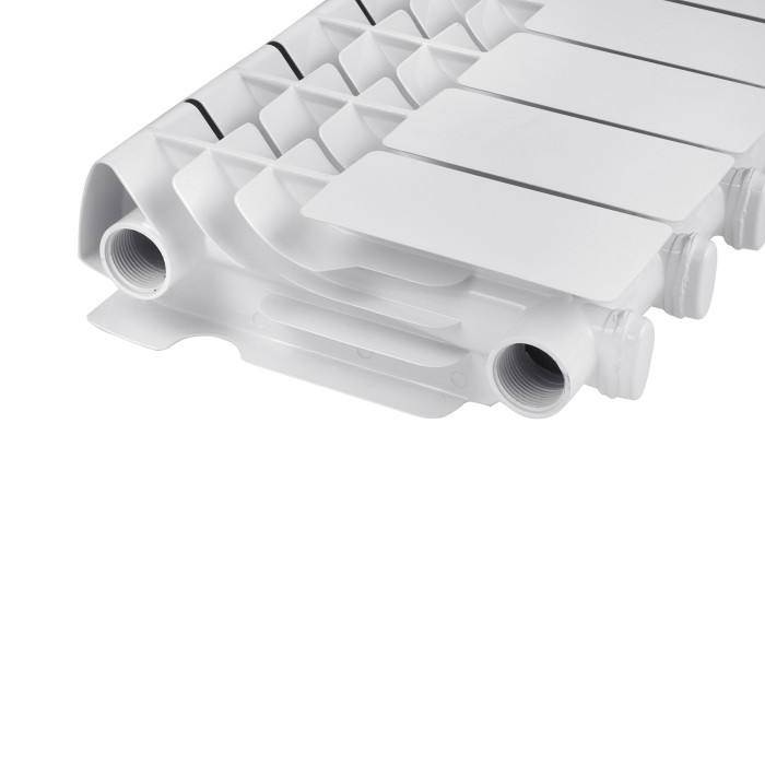 Радіатор біметалевий Calor Industry створений з урахуванням передових технологій у сфері виробництва опалювального обладнання. Особливу увагу приділено високій міцності та корозійній стійкості радіатора, що є найважливішою умовою його експлуатації у системах центрального опалення України та країн СНД. Секція радіатора складається із сталевого заставного елемента, залитого під тиском алюмінієвим сплавом. Конструкція секції повністю виключає контакт теплоносія з алюмінієвим сплавом. Для складання секцій в єдиний прилад використовуються високоміцні сталеві ніпелі виконані методом холодного кування та силіконові прокладки, які забезпечують надійну герметичність з різними типами теплоносія при високих температурах та тиску. Поверхня радіатора пофарбована методом анафорезу з наступним напиленням порошкової емалі в електростатичному полі білого кольору і відповідає німецькому колірному стандарту RAL 9010. Радіатори мають збільшену тепловіддачу і якісне фарбування кожної секції.