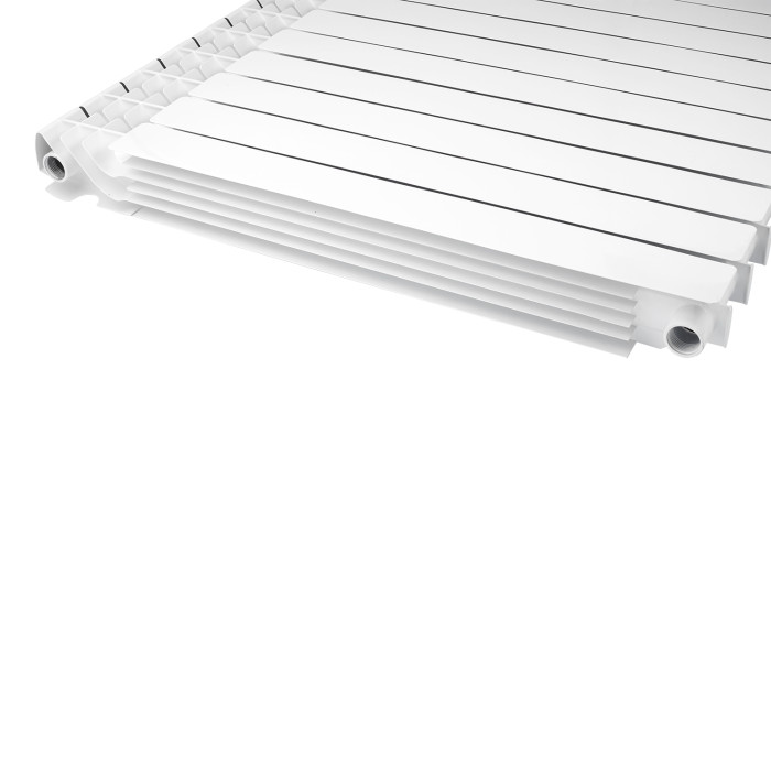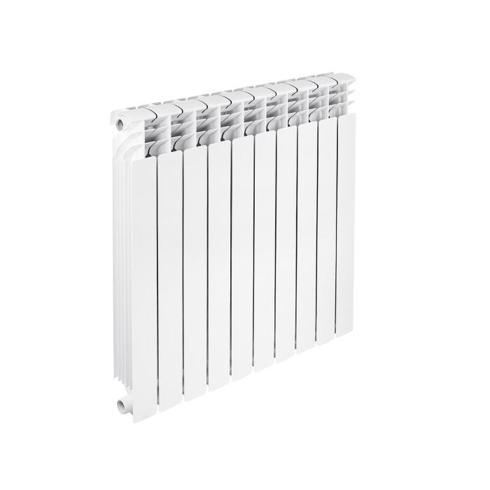 Радіатор алюмінієвий Calor FB-800 створений з урахуванням передових технологій у сфері виробництва опалювального обладнання. Особливу увагу приділено високій міцності та корозійній стійкості радіатора, що є найважливішою умовою його експлуатації у системах центрального опалення України та країн СНД. Секція радіатора складається зі сталевого заставного елемента, залитого під тиском алюмінієвим сплавом. Конструкція секції повністю виключає контакт теплоносія з алюмінієвим сплавом. Для складання секцій в єдиний прилад використовуються високоміцні сталеві ніпелі виконані методом холодного кування та силіконові прокладки, які забезпечують надійну герметичність з різними типами теплоносія при високих температурах та тиску. Поверхня радіатора пофарбована методом анафорезу з наступним напиленням порошкової емалі в електростатичному полі білого кольору і відповідає німецькому колірному стандарту RAL 9010. Радіатори мають збільшену тепловіддачу і якісне фарбування кожної секції.