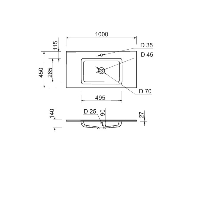 Раковина Adamant FLAT має прямокутну форму, виготовлена зі штучного каменю з розмірами 1000 x 450 x 140 мм та білим кольором. Накладний тип встановлення з отворами для змішувача та переливу дозволяє монтаж на тумбу. Мате... Читать далее...