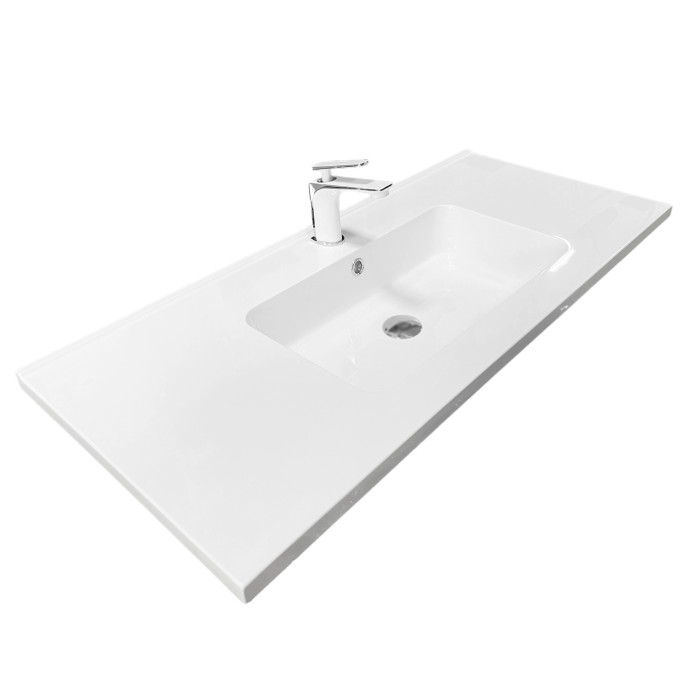 Раковина, умивальник Adamant FLATE, штучний камінь, прямокут., з отвором для змішувача, з отвором для переливу, 1000х450х140мм, накладний, білий