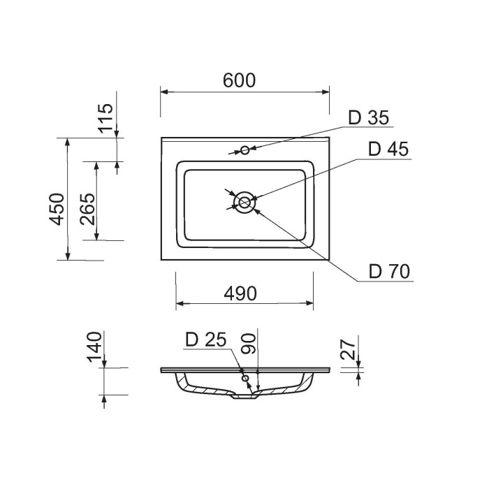 Раковина Adamant FLAT має прямокутну форму, виготовлена зі штучного каменю з розмірами 600 x 450 x 140 мм та білим кольором. Накладний тип встановлення з отворами для змішувача та переливу дозволяє монтаж на тумбу. Матер... Читать далее...