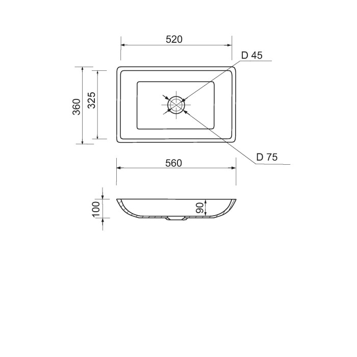Раковина Adamant LOWER має прямокутну форму, виготовлена зі штучного каменю з розмірами 560 x 360 x 100 мм та білим кольором. Накладний тип встановлення з отвором для змішувача та без отвору для переливу дозволяє монтаж ... Читать далее...