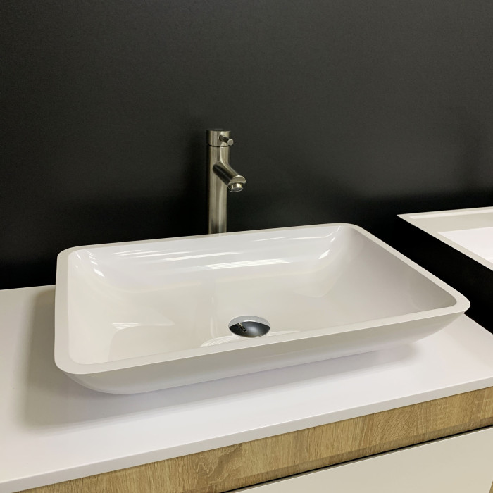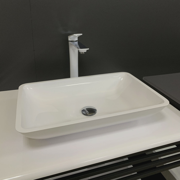 Раковина, умивальник Adamant LOWER, штучний камінь, прямокут., без отвору для змішувача та переливу, 560x360x100мм, накладний, білий