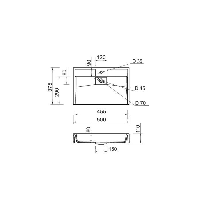 Раковина Adamant VISION має прямокутну форму, виготовлена зі штучного каменю з розмірами 500 x 380 x 110 мм та білим кольором. Накладний тип встановлення з отвором для змішувача та без отвору для переливу дозволяє монтаж... Читать далее...