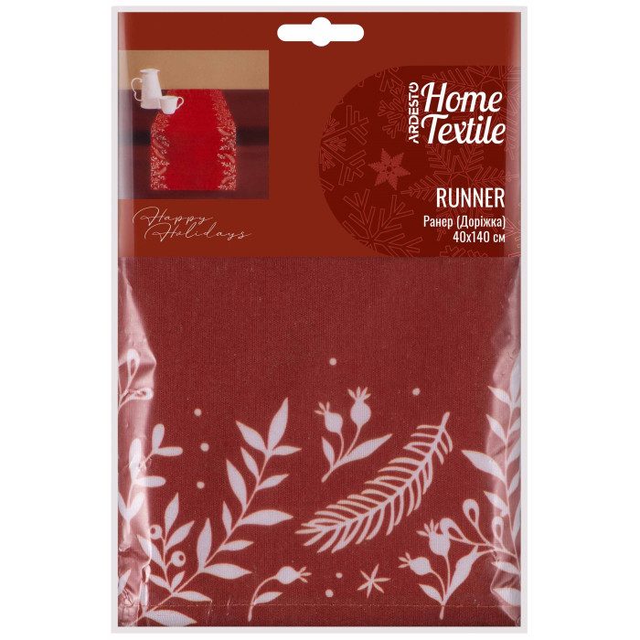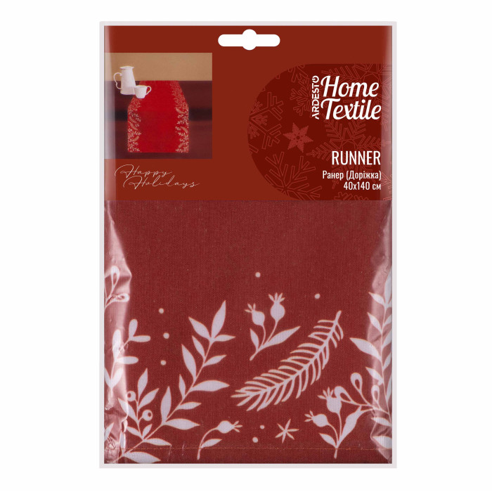 Ранер ARDESTO Happy Holidays, 40х140см, 90% поліестер, 10% бавовна, червоний