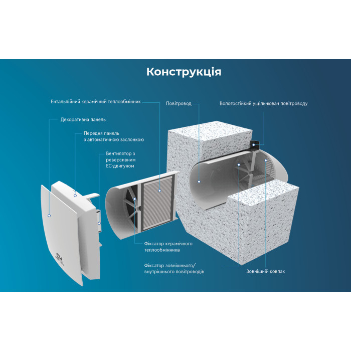 Рекуператор Cooper&Hunter Easy Vent CH-HRV070K-WF з продуктивністю 70 м³/год створює контрольований повітрообмін з рекуперацією тепла до 92%. Керамічний теплообмінник зберігає енергію взимку та охолодження влітку, а два режими (рекуперація та вентиляція) адаптуються до потреб. Wi-Fi керування через додаток дозволяє віддалено регулювати роботу. Установка в стіну товщиною 230–420 мм полегшує монтаж. Цей пристрій оптимізує мікроклімат для квартир та офісів.