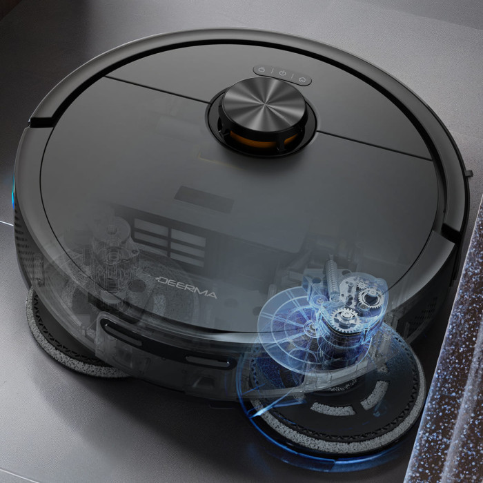 У цього робота-пилососа є дві круглі насадки для вологого миття підлоги, які дозволяють досягати найвищої якості прибирання, навіть уздовж країв плінтуса. Миття виконується за технологією Robotic Arm. Ця конструкція забезпечує ідеальну чистоту у кожному кутку вашого житла.