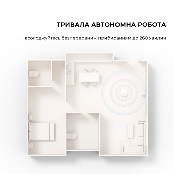 Потужність всмоктування 5000 Па завдяки технології Vormax, що дозволяє роботу-пилососу легко прибирати сміття, залишаючи підлогу бездоганно чистою.