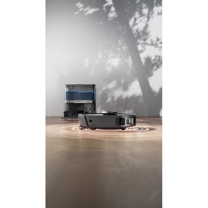 Автоматичне очищення: Після кожного прибирання робот повертається до базової станції та спорожнює свій вбудований пилозбірник у безмішкову базу. Конструкція дозволяє утримувати сміття до 30 днів, тож пристрій може працювати щодня без необхідності постійного очищення контейнера.
