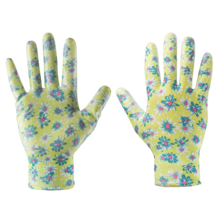 Рукавички робочі Verto, нітрилове покриття, р.9, жовтий в квіточку