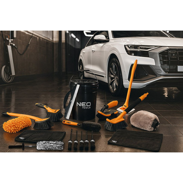 Рукавиця Neo Tools 11-459 — двостороння рукавиця для делікатного миття автомобіля розміром 28×20 см. М’яке покриття безпечно для ЛКП, знижує ризик подряпин при правильній техніці миття. Двостороння конструкція дозволяє швидко перевертати на чисту сторону без заміни інструменту. Поліестер легко вбирає піну, швидко виполіскується і швидко сохне. Ідеальний вибір для безпечного та комфортного ручного миття кузова.