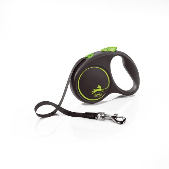 Рулетка Flexi Black Design для собак, стрічка, розмір S, 5 м (зелена)