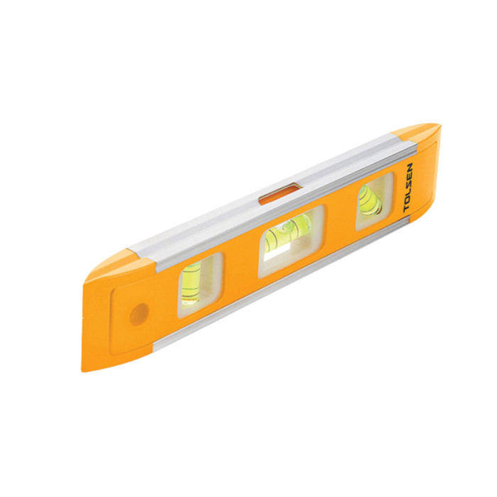 Рівень Tolsen 35059 довжиною 22,5 см із корпусом із ABS-пластику та алюмінієвими основами забезпечує точність вимірювань. Оснащений 3 капсулами для горизонтального, вертикального та похилого вирівнювання. Компактний і зручний для роботи в обмеженому просторі.
