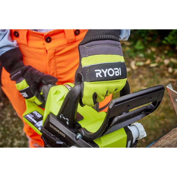 Рукавичка для бензопили Ryobi RAC258XL розроблена для того, щоб забезпечити користувачеві максимальну впевненість та додатковий захист та комфорт під час роботи. Вона має клас захисту 2, що означає, що набивання може захистити вас за швидкості ланцюга до 24 м/с. Рукавички розроблені з урахуванням побажань користувача, на кінчику вказівного пальця правої руки є сенсорний екран, що дозволяє користуватися телефоном у перервах між роботою. Це одна пара розміру Medium – також доступні розміри Large та X-Large.
