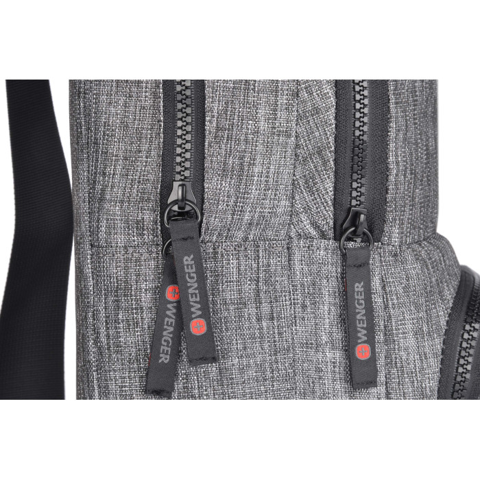 Рюкзак-слінг Wenger Console Cross Body Bag об'ємом 8 л виконаний з меланжевого поліестеру в сірому кольорі Charcoal Heather. Основне відділення на блискавці доповнене окремим відсіком для планшета, а дві зовнішні кишені забезпечують швидкий доступ до дрібниць. Регульований плечовий ремінь з карабіном дозволяє носити сумку на лівому чи правому плечі, а верхня ручка полегшує перенесення в руках.