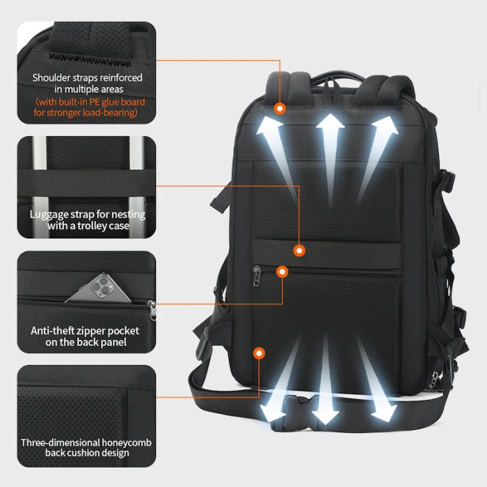 Tigernu T-B9235 — це фірмовий рюкзак, що поєднує в собі стиль, функціональність та зручність. Створений спеціально для подорожей, він втілює сучасний дизайн і практичність.МІЦНІСТЬ І КОНСТРУКЦІЯРюкзак виготовлений із високоякісного водонепроникного матеріалу — оксфорд. Цей матеріал поєднує в собі не тільки водостійкість, а й стійкість до порізів та розривів.Всі елементи рюкзака, що несуть навантаження, додатково посилені, що дозволяє витримувати більшу вагу навіть при активному використанні.ОРГАНІЗАЦІЯ ПРОСТОРУРюкзак має основне відділення, з відсіками та кишенями, у тому числі відсіком який може вмістити ноутбук до 15,6 дюйма. Також у рюкзаку є містке верхнє відділення для речей, відділення для фототехніки з м'якими проставками та вільною організацією простору, передня кишеня з відсіками та органайзерами. Є задня кишеня на блискавці, ремінець для кріплення рюкзака на телескопічну ручку валізи та нижню кишеню для рейнкавера (в комплекті).СПИНКА РЮКЗАКАСпинка рюкзака Tigernu виготовлена зі спеціального спіненого матеріалу з ефектом пам'яті MEMORY FOAM, має ортопедичні властивості, що допомагають впоратися з болем у спині та дискомфортом. Ця властивість забезпечує підтримку хребта та попереку, а її контурний дизайн сприяє формуванню здорової постави, підтримуючи природний вигин хребта. Незалежно від того, чи носите ви важкі речі або просто подорожуєте місцевими пейзажами, ортопедична спинка невпинно працює, щоб рівномірно розподілити вагу, зменшуючи навантаження на нижню частину спини та плечей.ВИРОБНИЦТВОПри виробництві рюкзаків Tigernu використовують тільки якісні матеріали та у поєднанні з нанесеними елементами та знаками на різних частинах рюкзака гарантують захист власної марки від підробок.ОСОБЛИВОСТІ:− місце для ноутбука або планшета: до 15,6";