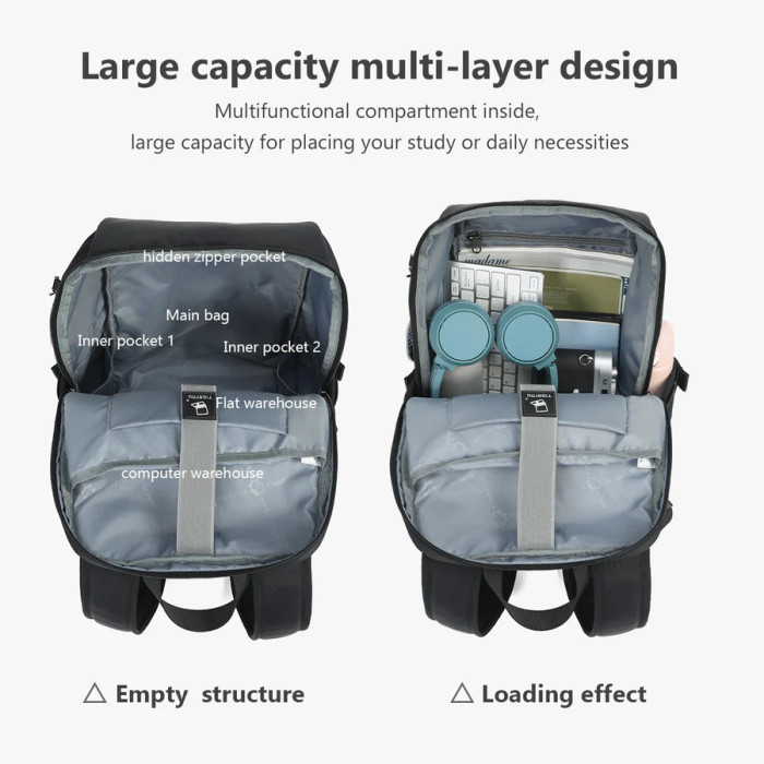 У виробі присутня достатня кількість кишень та органайзерів, в тому числі кишеня на спинці рюкзака, бокові та передня кишені.СПИНКА РЮКЗАКАМ’яка спинка виробу — має м’яку тканину, що може повторювати контури вашого тіла. Вона легко адаптується до ваших рухів, незалежно від того, пересуваєтесь ви жвавими вулицями чи вирушаєте на природу.ВИРОБНИЦТВОПід час виробництва рюкзаків Tigernu використовують тільки якісні матеріали та в купі з нанесених елементів та знаків на різних частинах наплічника гарантують захист власної марки від підробок.