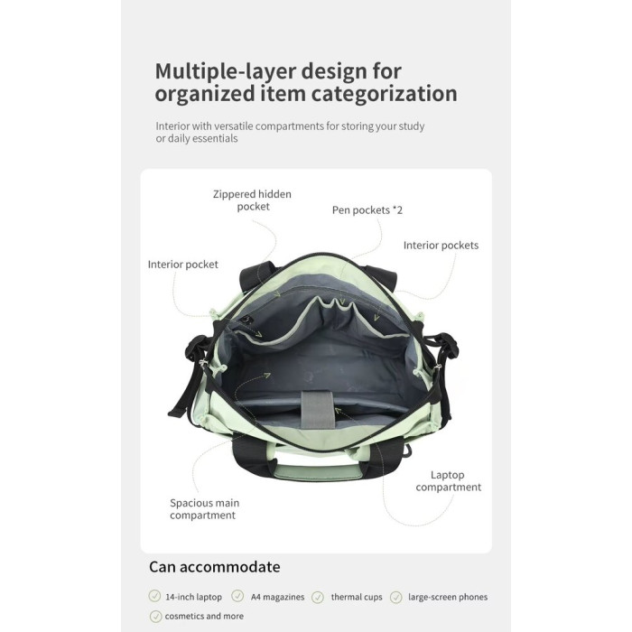 ОСОБЛИВОСТІ:− відсік для ноутбука або планшета: до 14" (34 x 26 см);